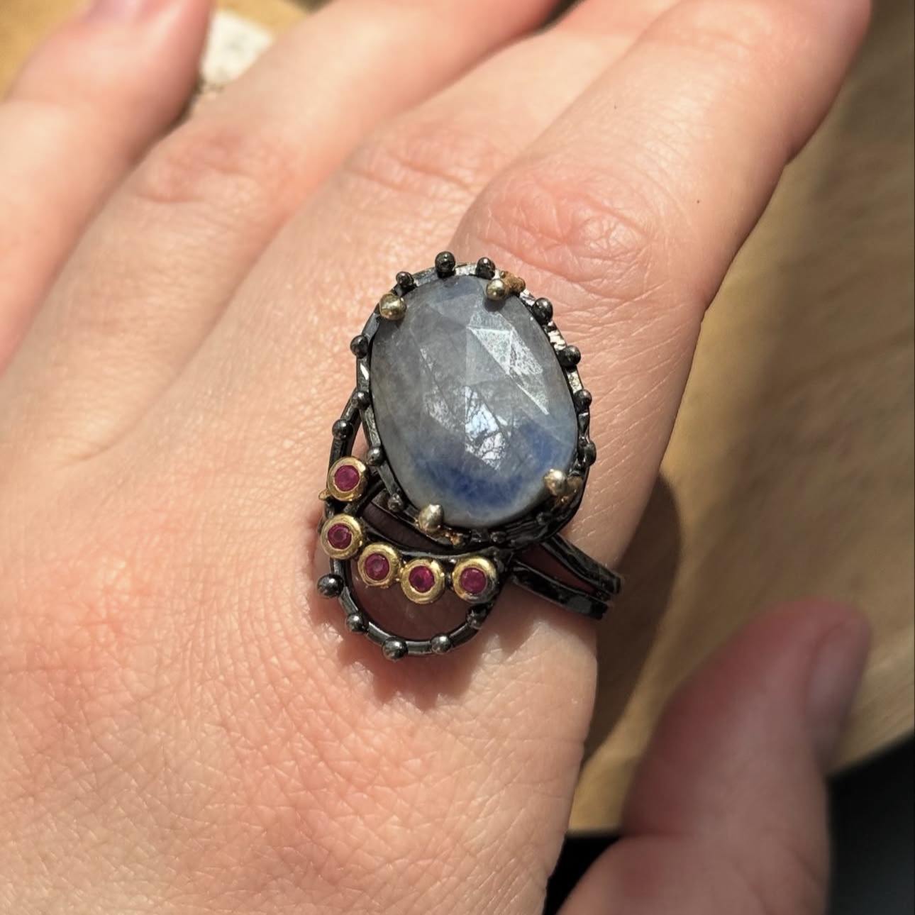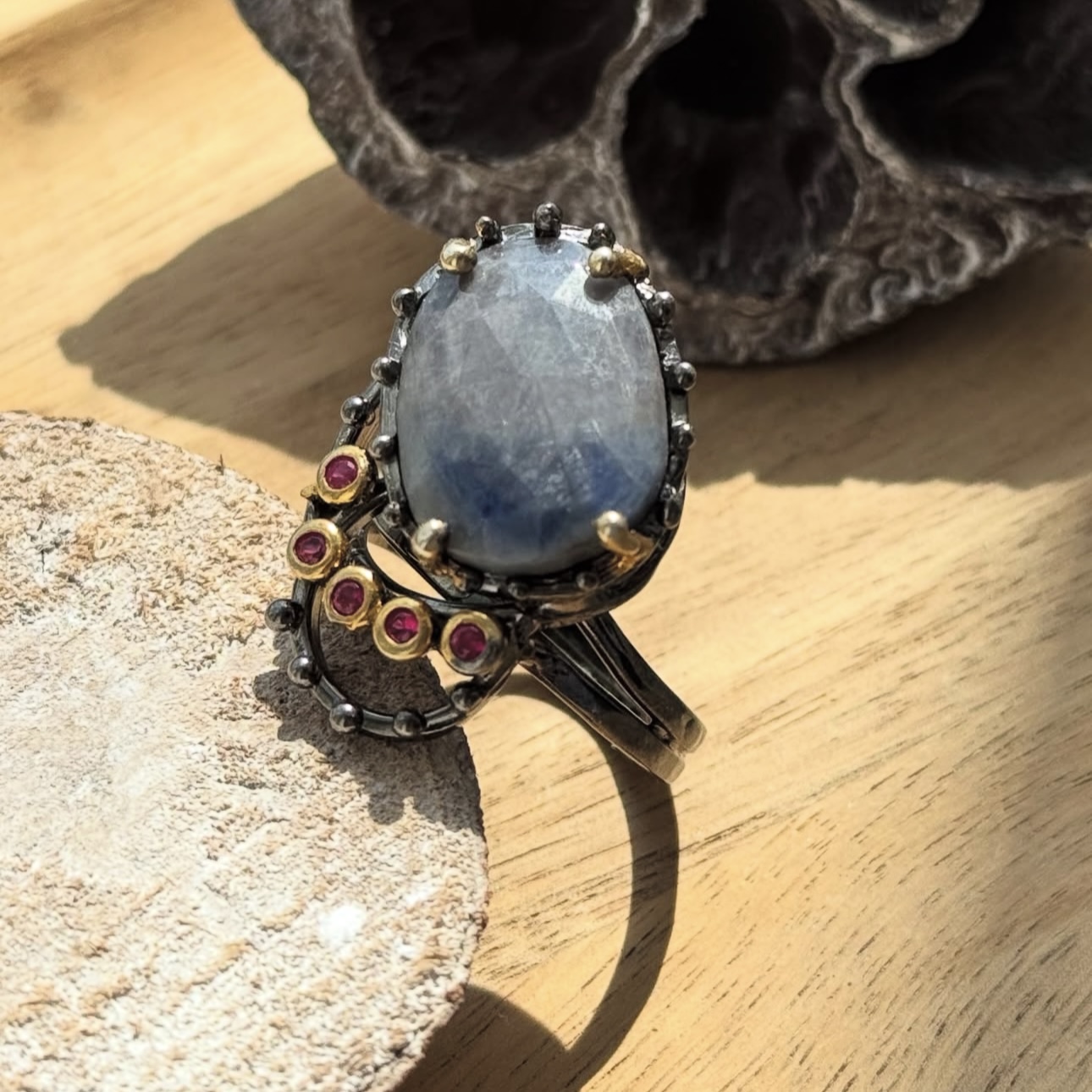 Каблучка з природнім сапфіром.