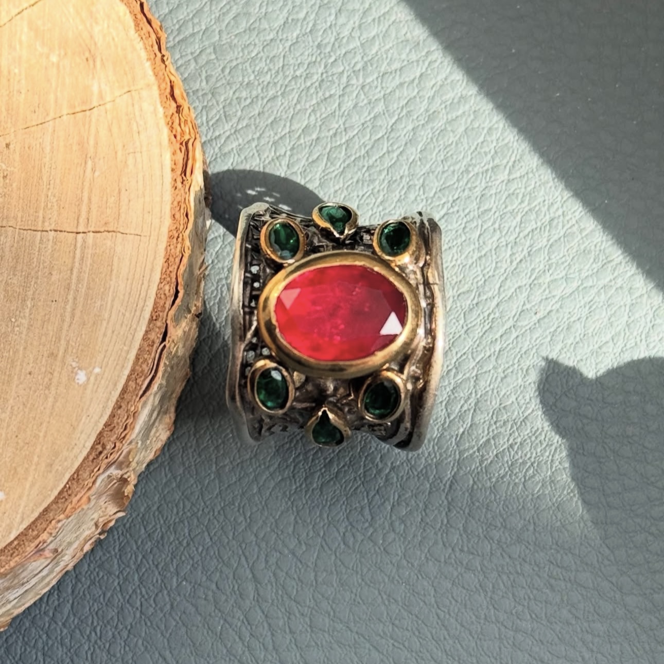 Комплект зі смарагдом (гідротермальним). Срібло (родоване, не темніє) Розмір кабулчки 17.5/18(можемо змінити 3-4 дні).